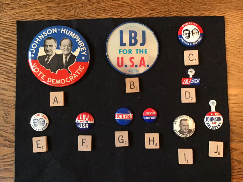 Title (ebay affiliate link): Lyndon B.Johnson Hubert Humphrey Campaign Button Pins For President Hologram Pin