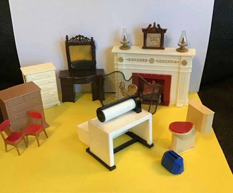 Title (ebay affiliate link): Vintage LOT Dollhouse furniture-Miner Best~Plasco~Renwal~Jaydon~Blue Box