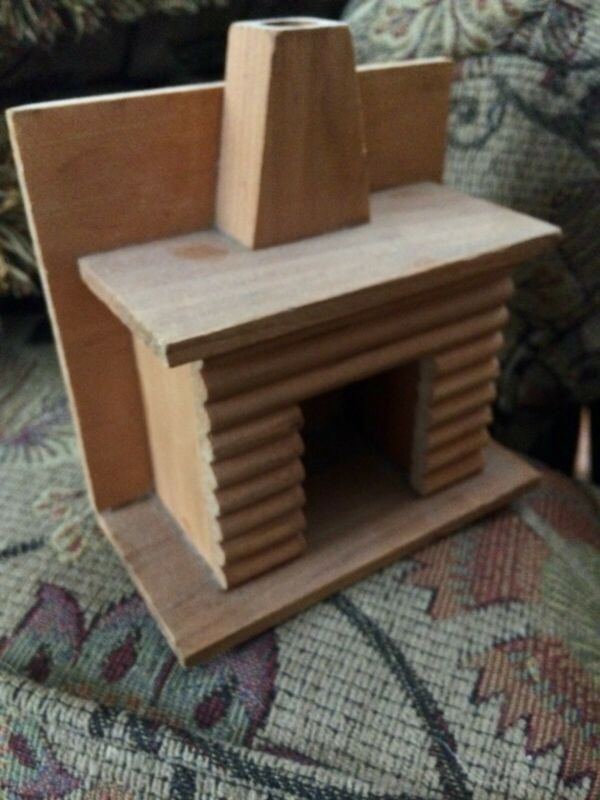 Vintage Dollhouse Log Cabin Fireplace Wooden Furniture