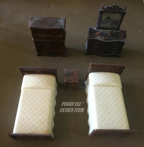 Title (ebay affiliate link): RENWAL DOLL HOUSE FURNITURE BEDROOM SUITE: 2 BEDS, DRESSER, VANITY, NIGHT STAND