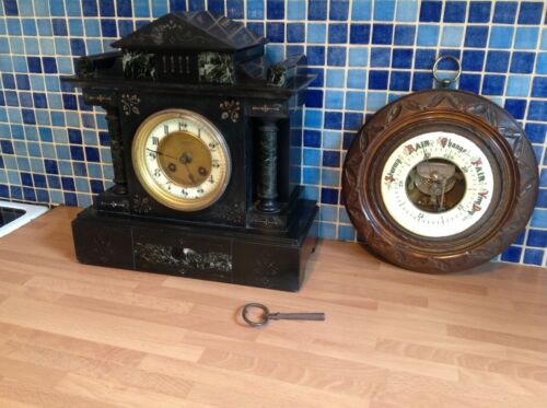 ANTIQUE SLATE & MARBLE CLOCK AND BAROMETER FOR RESTORATION 99P START NO RESERVE