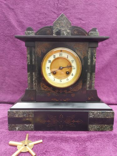 Title (ebay affiliate link): Vintage Antique Victorian French AD Mougin Slate Mantel Chiming Clock c1880