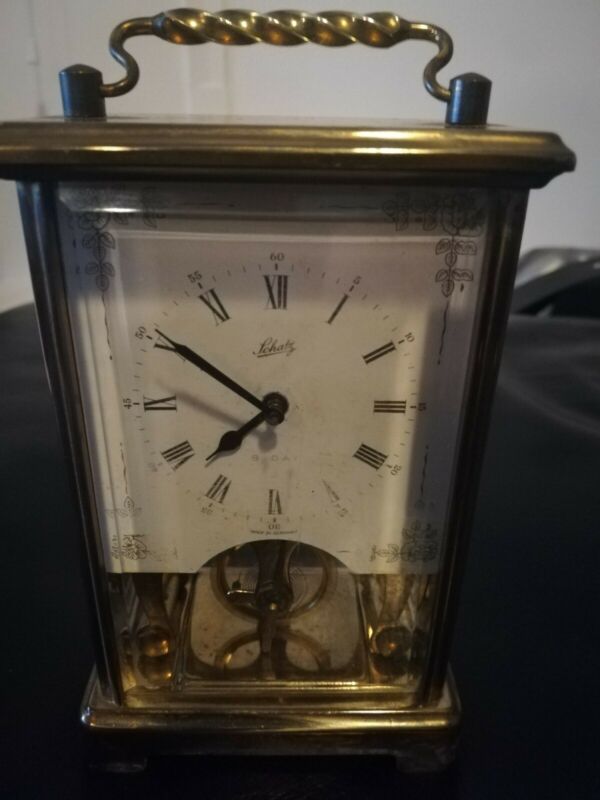 Title (ebay affiliate link): Vintage German Brass Aug Schatz & Sohne 8 Day Bevelled edge Carriage Clock