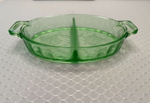 Title (ebay affiliate link): "Floral" Depression Glass 2 Part Relish Dish Jeannette Glass Co. 1931-1935