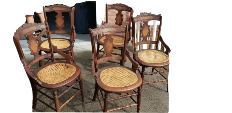 Title (ebay affiliate link): Victorian Eastlake cane seat dining chairs, set of 5