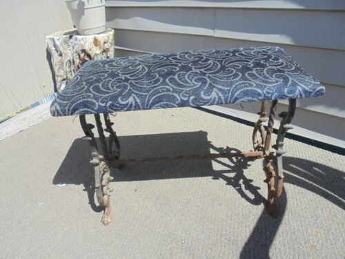 Antique Victorian claw footed Cast Iron 24" Vanity Piano Bench Stool blue velvet