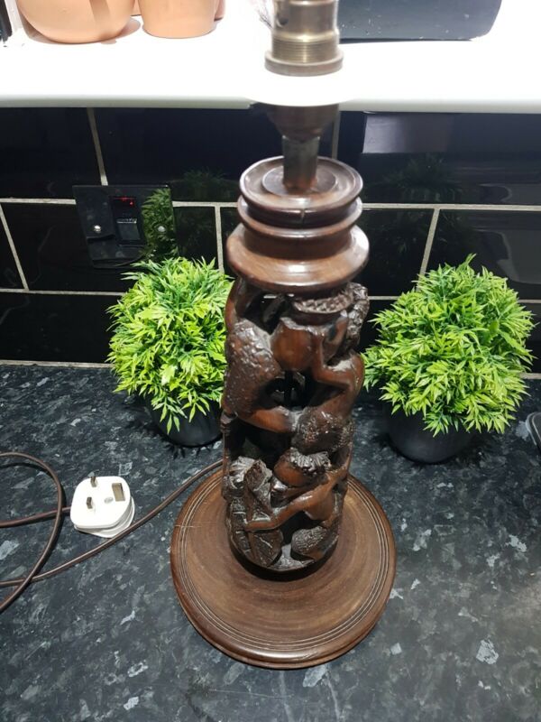 Title (ebay affiliate link): Mid Century ,African Carved Wooden Lamp Base ,12 photos