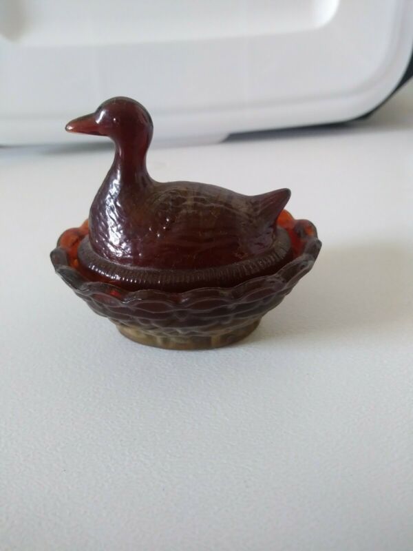 Title (ebay affiliate link): Brown milk glass salt celt / hen chicken on nest basket dish duck