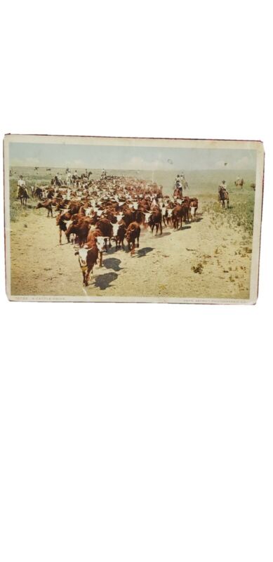Fred Harvey vintage postcard A cattle drive cowboys cows