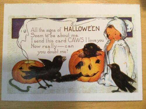 Title (ebay affiliate link): POSTCARD HALLOWEEN -HALLOWE''EN PUMPKIN & CROWS EARLY 20th CENTURY REPRO VIEW # 2