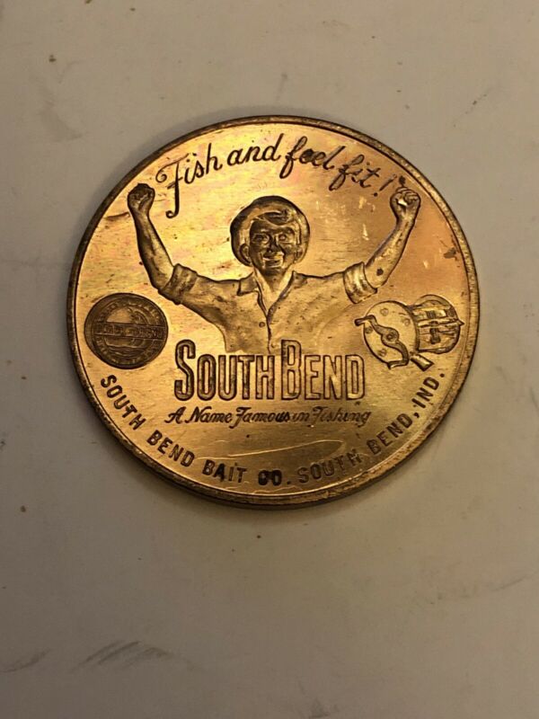 Title (ebay affiliate link): Vintage South Bend Bait Co Lucky Brass Coin Token Good Fishing Luck Tackle