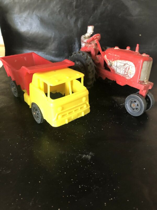 Title (ebay affiliate link): Two Vintage Plastic And Rubber Toy Vehicles One Tractor One Dump Truck