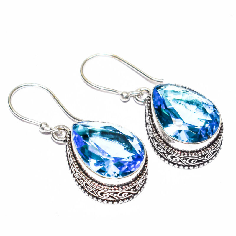 Title (ebay affiliate link): Swiss Blue Topaz Vintage Style Gemstone 925 Silver Jewelry Earring Size-1.5"