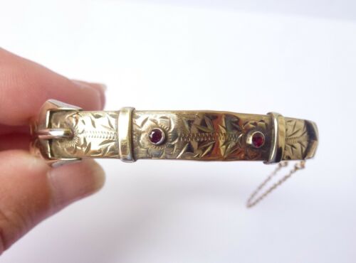 Title (ebay affiliate link): Antique Buckle Bangle set with garnets 9CT gold metal core 11.4g