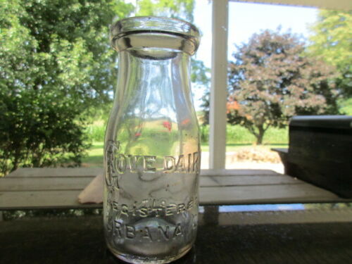 Title (ebay affiliate link): Vintage Half Pint Glass Milk Bottle Grove Dairy Urbana Ohio