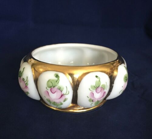Vintage Fenton Milk Glass Charleton Roses & Gold Melon Powder Jar Bottom w Label