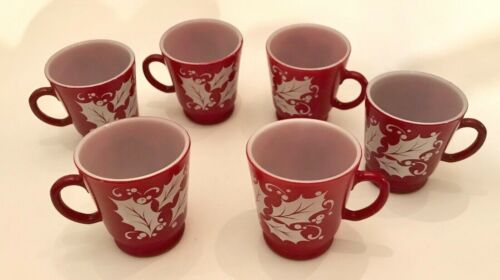 Title (ebay affiliate link): 6 Hazel Atlas Milk Glass HOLLY Punch Cups Egg Nog WHite & Cranberry Holiday
