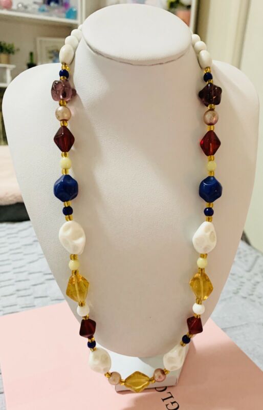 Title (ebay affiliate link): Vintage Milk Glass & Lampwork Glass Single Strand Necklace