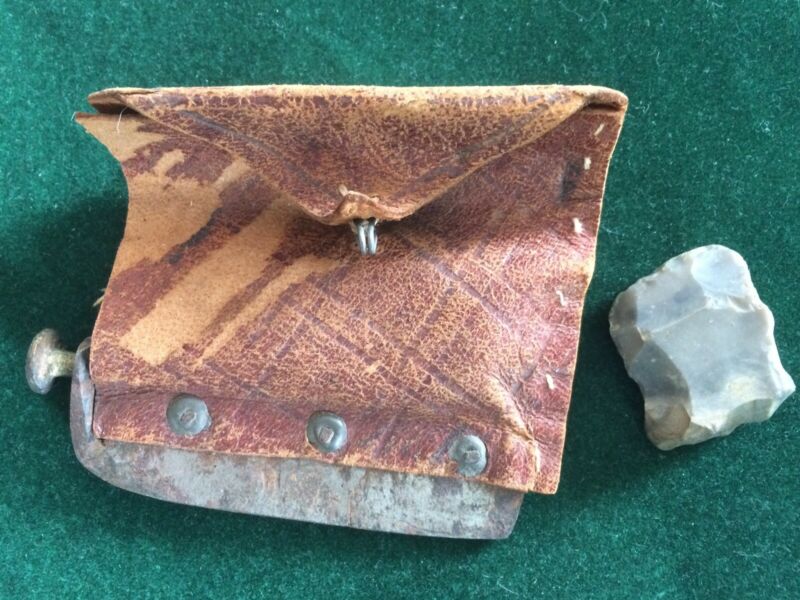 Title (ebay affiliate link): Antique FIRE STRIKER, FLINT ROCK FIRE STARTER, and BRASS PIN in LEATHER CASE