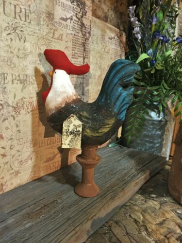 *Primitive 8x5in BLUE TAIL ROOSTER BOBBINFABRIC HANDMADE Country old rusty doll*