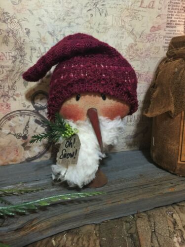 *Primitive 6x4in SNOWMAN HEAD BOBBIN FABRIC HANDMADE Country old rusty doll*