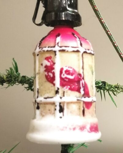 Title (ebay affiliate link): Red Parrot in Ribbed Cage. C-6 Miniature Base. Milk Glass, Japan. Works.