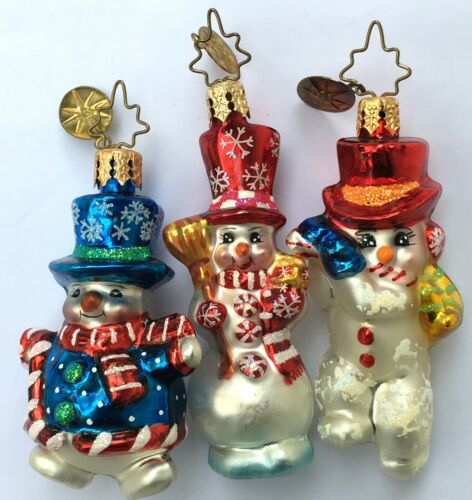 Title (ebay affiliate link): Radko Snowmen Ornaments Lot of 3 Snowflake top hats