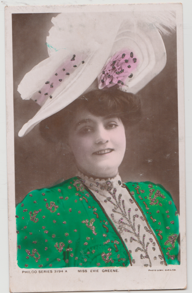 Title (ebay affiliate link): UK GB Actress MISS EVIE GREENE photo studio portrait Philco postcard c1910s