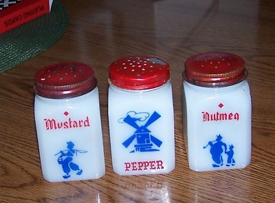 SET OF 3 MILK GLASS DUTCH SPICE JARS USA
