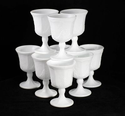 9 White MILK GLASS Goblet Tumbler GRAPE HARVEST Pattern