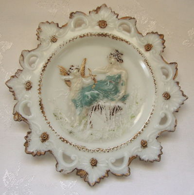 Vintage Milk Glass Plate CUPID & Psyche w/ Coloring