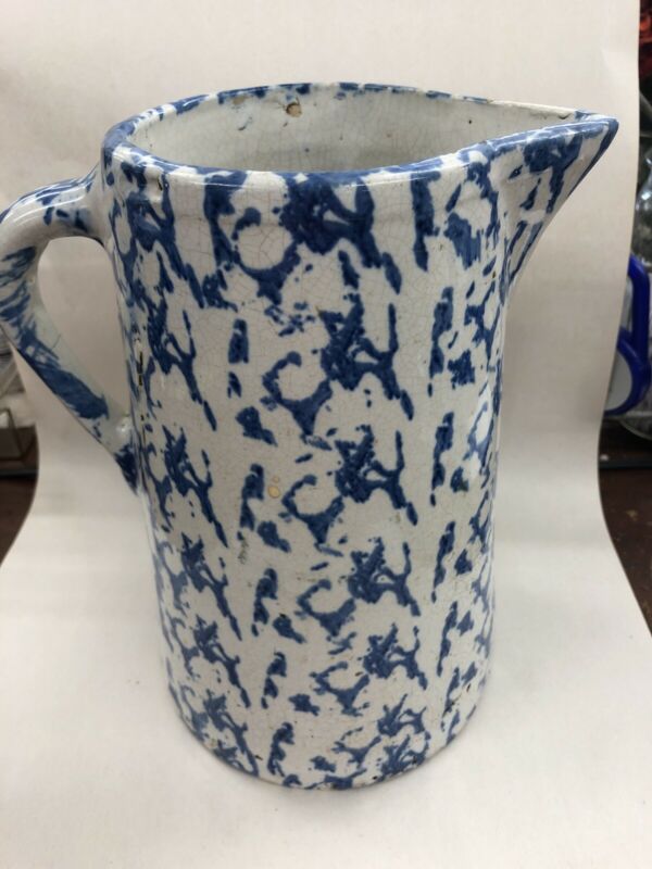 ANTIQUE SPONGEWARE PRIMITIVE TALL PITCHER
