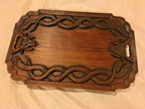 Title (ebay affiliate link): Antique Vintage Hand Carved Wooden Serving Tray Snakes & Bulls 18.5" x 12"