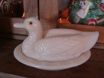 Vtg Westmoreland Beige Milk Glass Duck Candy Dish