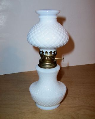 Minature Kerosene Oil Lamp -WHITE MILK GLASS-