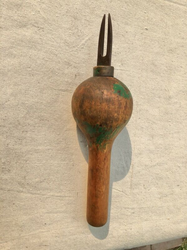 Primitive Wood Ball Handled Garden Tool Dandelion Weed Puller