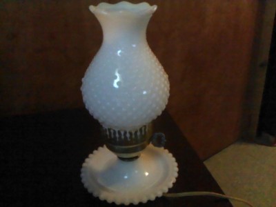 Antique Vintage Hobnail Milk Glass Table Lamp 1950s