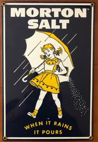 Title (ebay affiliate link): Ande Rooney Morton Salt "When It Rains It Pours" Porcelain Enamelware Metal Sign
