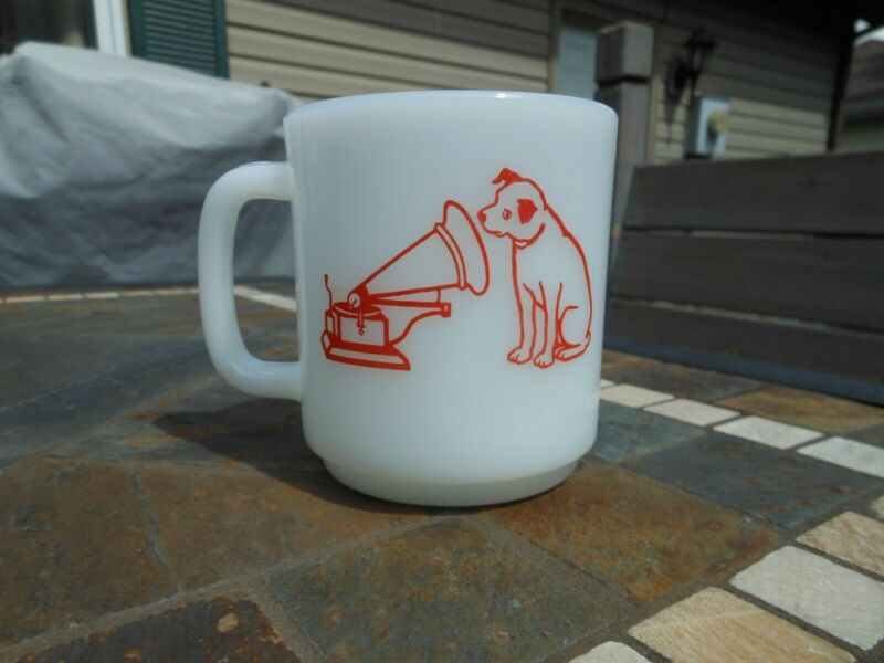 Vintage RCA Lancaster 1982 40th Anniversary Nipper Milk Glass Mug Cup Glasbake
