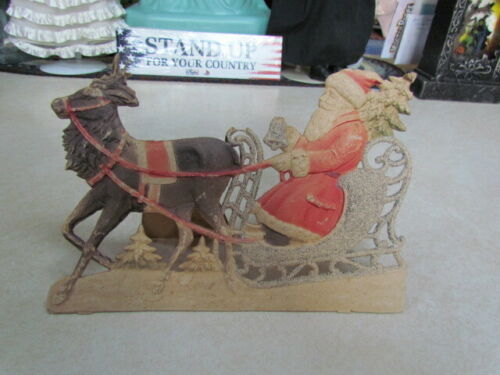Title (ebay affiliate link): Vintage Germany Embossed Victorian Diecut Santa in Sleigh with Reindeer & Easel
