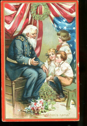 Nobly they die in Freedoms Name-Old SOldier & CHildren-American Flag
