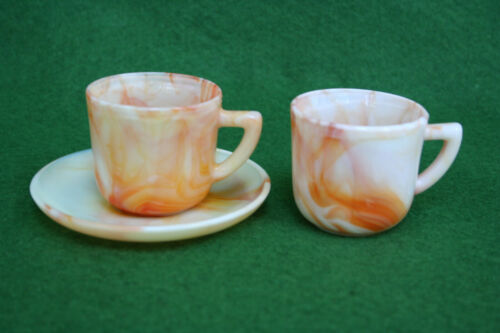 Vtg Akro Agate Marbleized Demitasse Cups & Saucer