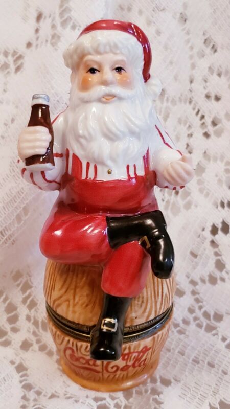 Title (ebay affiliate link): Coca-Cola Company Santa Holding Coke Bottle ~Hinged Trinket Box ~ Ornament