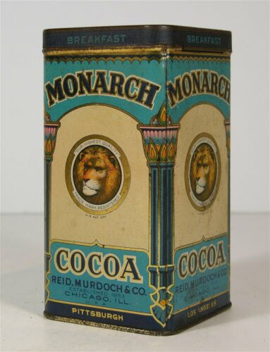 Title (ebay affiliate link): 1910s TIN LITHO MONARCH COCOA TIN / PRODUCT PACKAGE 1/2 POUND CHOCOLATE TIN