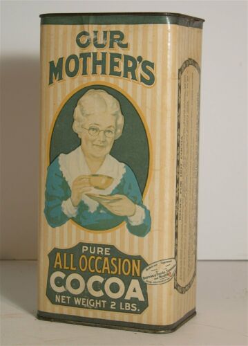 Title (ebay affiliate link): 1920s OUR MOTHERS COCOA TIN / PRODUCT PACKAGE 2 POUND HOT CHOCOLATE POWDER TIN