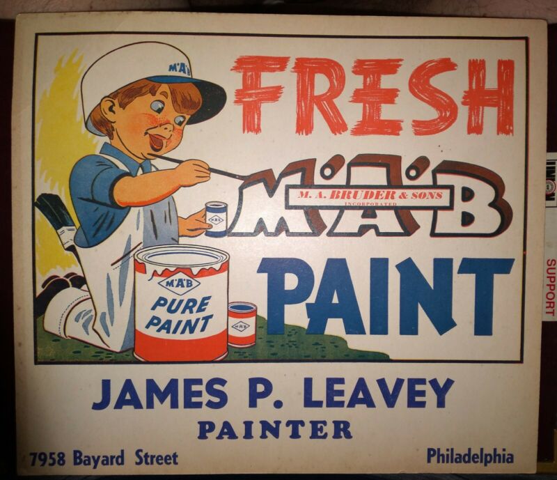 Title (ebay affiliate link): 1950''s, M.A.B. Fresh Paint Sign. James P. Leavey, Phila.