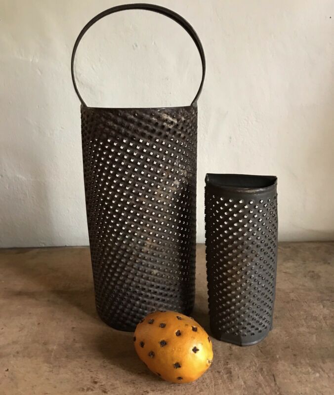 Title (ebay affiliate link): 2 BIG Old Antique Hand Punched Tin Graters Dark Patina Worn Primitive AAFA