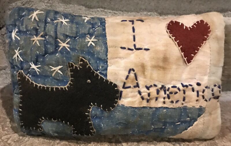 Title (ebay affiliate link): Primitive *I Love America* Scottie Dog Shelf Pillow-Made From Vintage Quilt