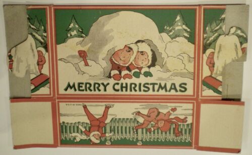 Vtg 1930s Snow Snowman Ice Skate Merry Christmas Candy Container Box w/ String