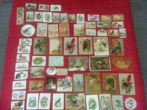 1800''s advertising trade card / clip art ANIMALS LOT of 63 pieces oil cromos